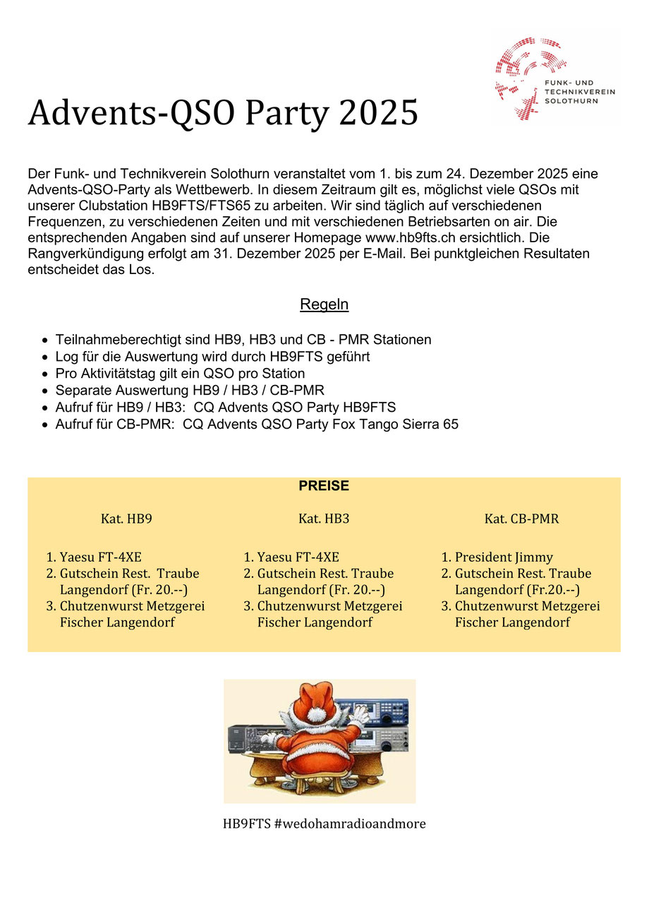 Aktuell · 14. November 2025 Advents-QSO Party 2025 tagPlaceholderTags: Kommentar schreiben Kommentare: 0